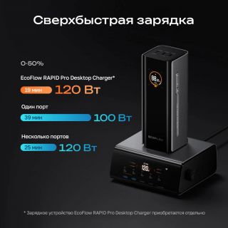 • Быстрая зарядка всего 47 минут до 80% с зарядной станцией EcoFlow RAPID Pro 320 Вт